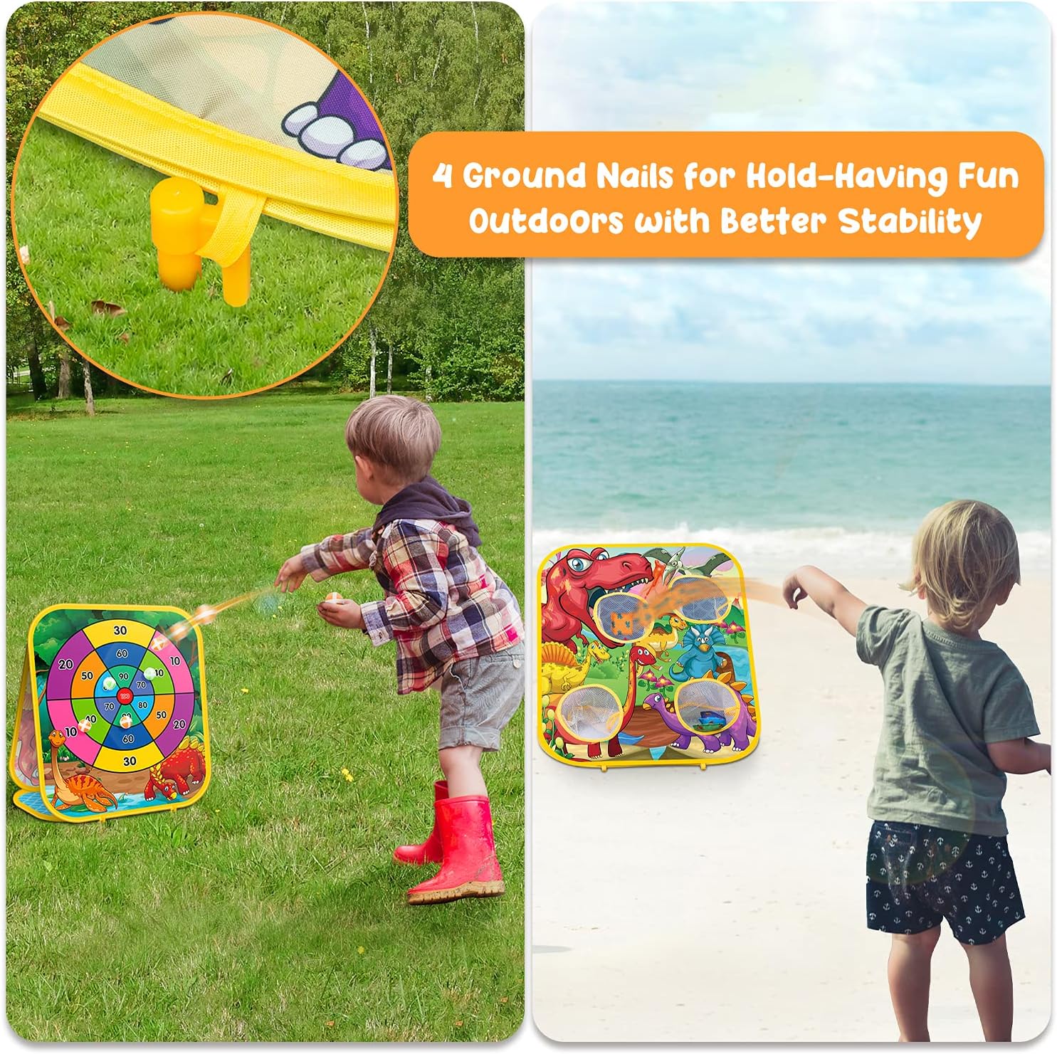 One of the features that sets this bean bag toss game apart is its versatile gameplay options. Not only does it include the classic bean bag toss game, but it also introduces a challenging dart game. This combination allows children to explore a variety of gaming experiences, stimulating their creativity and keeping them engaged. Additionally, the game is crafted with a dinosaur theme, sparking their imagination and making playtime even more exciting.