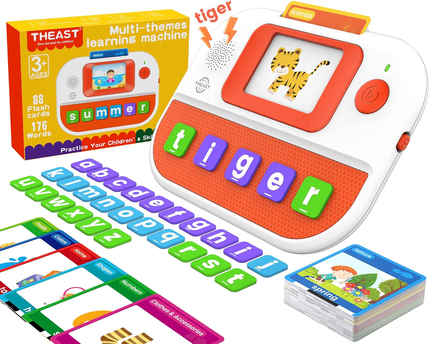 - Multi-functional word learning machine: The ThEast Learning Educational Toys integrate spelling and reading, providing support for children’s learning through hearing, seeing, and hand spelling. With these toys, your child can improve their object matching, color recognition, hand-eye coordination, and problem-solving skills, promoting all-round development.